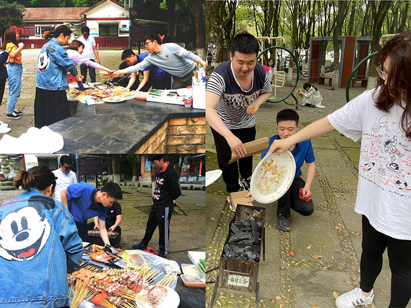 到達(dá)地點(diǎn)后,所有人主動(dòng)加入勞動(dòng)小組,我們一起燒火燒炭,布置桌子,搭帳篷,燒烤等。